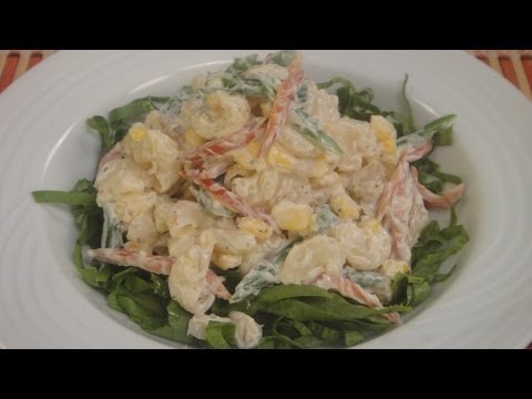 Sunshine Salad - Sunshine Recipe - Boiled macaroni tossed with fresh vegetables in mayonnaise dressing to make this delicious creamy salad. http://www.facebook.com/ChefSanjeevKapoor ...